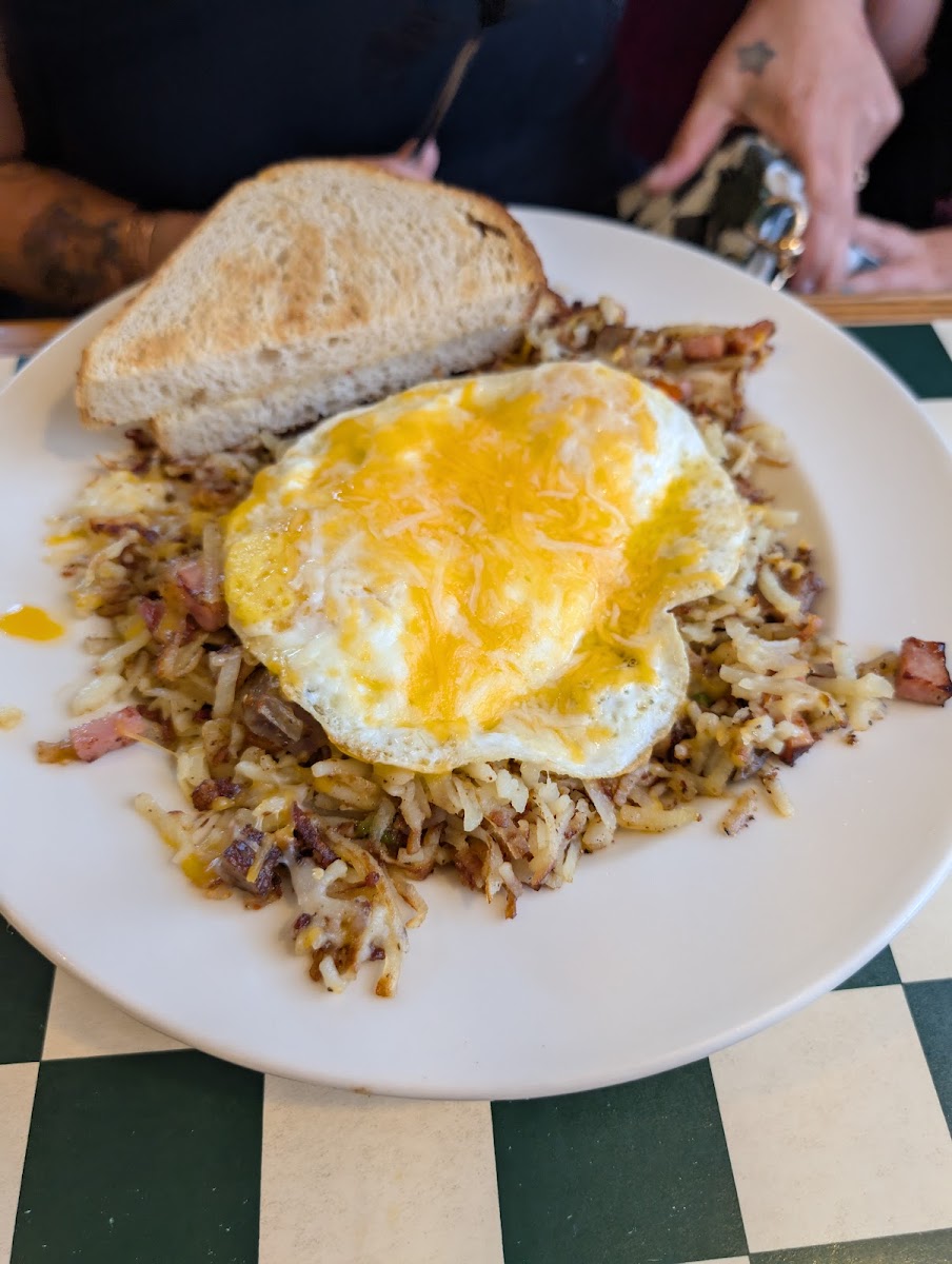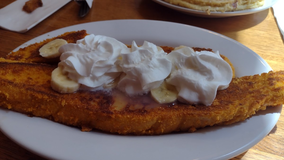 After a rather long wait....seated and ordered. Coffee in a huge cup, which I dislike as I t get cool before you get half thru it. Capt'n Crunch French toast was exceptional and more than I could eat. New waitress(2nd day training on the fly) was very polite even came over and apologized for the delay as she had made a mistake submitting the order. Honesty gets huge points with me.